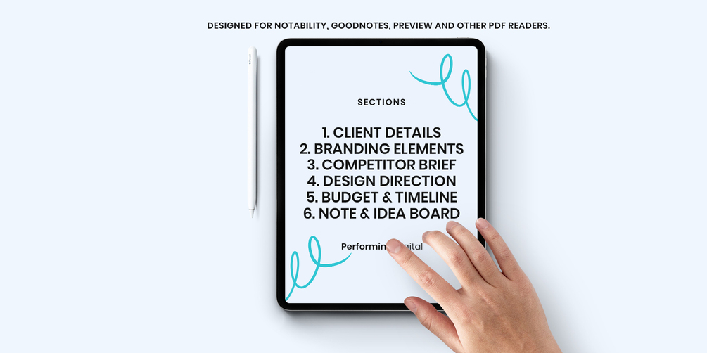 Web / Digital Project Questionnaire For New Clients. 2-page PDF designed for Notability, Goodnotes, Preview and other readers. Printable in A4.